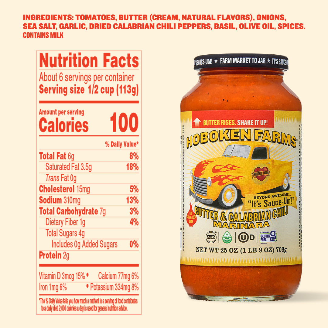 We know! They all look and taste so good! So why not try our Hoboken Farms Sampler pack and decide for yourself. This is a great way to try all of our delicious sauces or to send as a gift to your favorite chef! This combination includes the following 4 flavors: Marinara, Vodka, Butter & Calabrian Chili, and Basil Marinara
